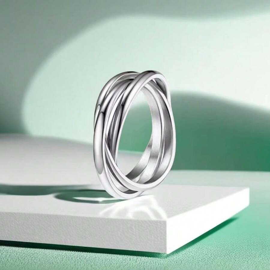 1pc Fashionable Rotatable Stainless Steel Three Ring Circles Couple Ring